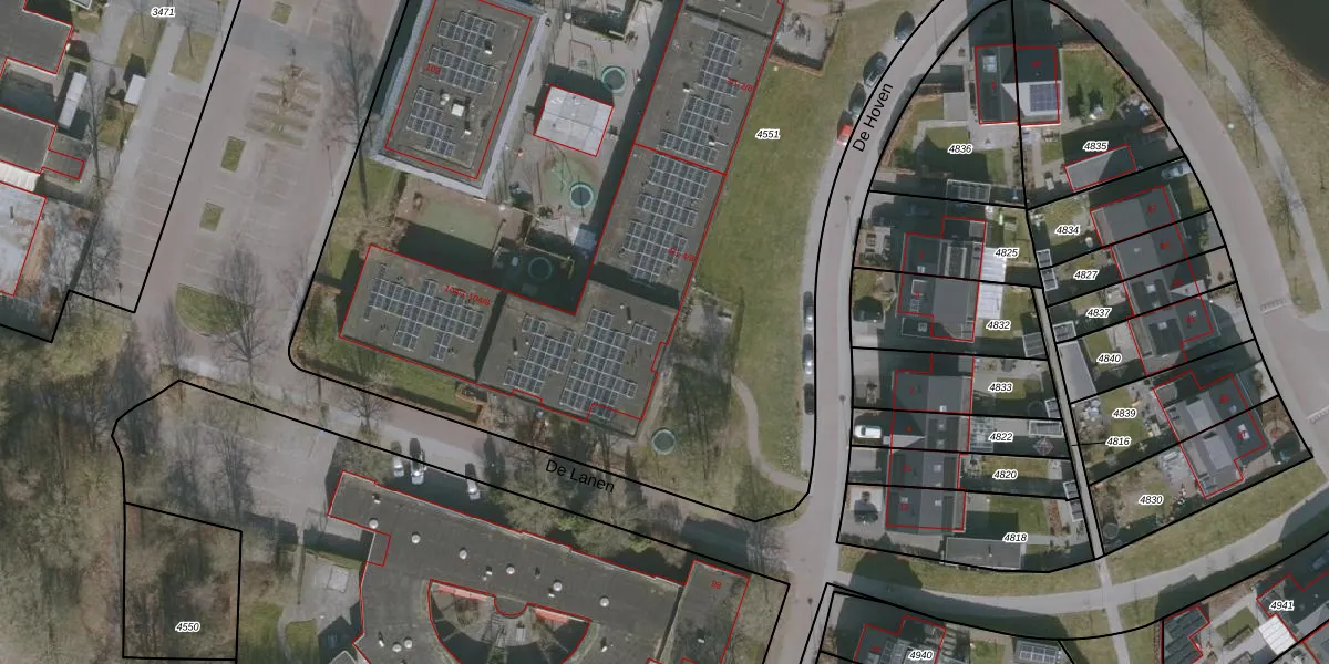 Het perceel waarop De Hoven 4-3 staat heeft een oppervlakte van 7200 m². Dit is een zeer groot perceel. De perceeloppervlakte wordt geregistreerd door het Kadaster. Gedetailleerde informatie over de maten van dit perceel kunt u vinden in het rapport Kadastrale kaart met maatvoering van De Hoven 4-3.