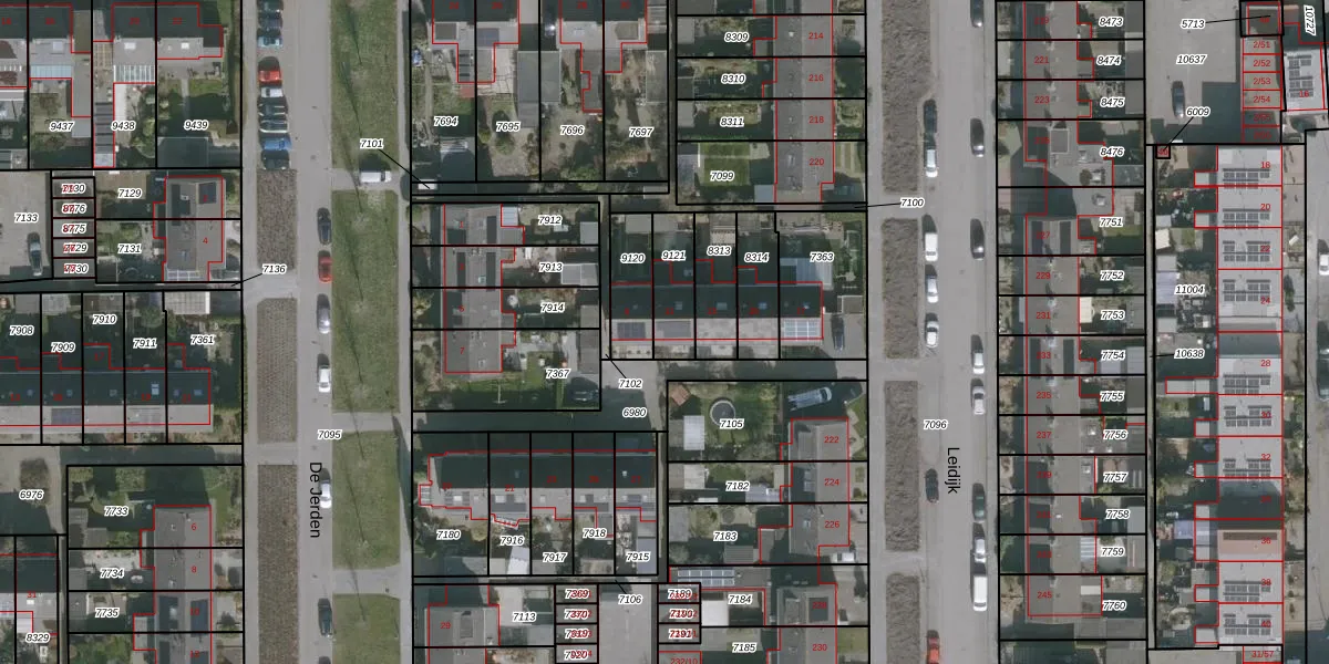Gebruik de zoekbalk of klik op een perceel voor informatie over de adressen binnen dit perceel.