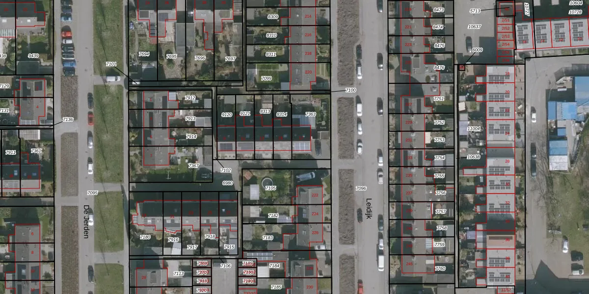 Gebruik de zoekbalk of klik op een perceel voor informatie over de adressen binnen dit perceel.