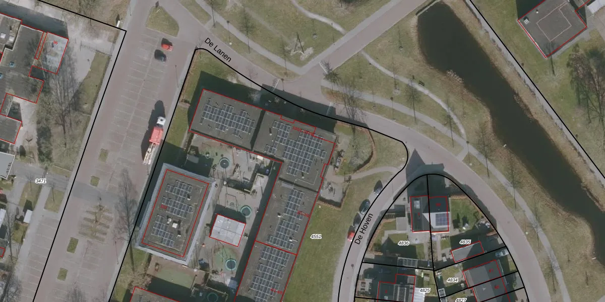 De Lanen 100-5 is gelegen op kadastraal perceel DTN02D4551. Deze kadastrale aanduiding is uniek en wordt gebruikt door het Kadaster om eigendomsrechten en andere zakelijke rechten vast te leggen. Het perceel maakt onderdeel uit van de kadastrale gemeente Drachten.