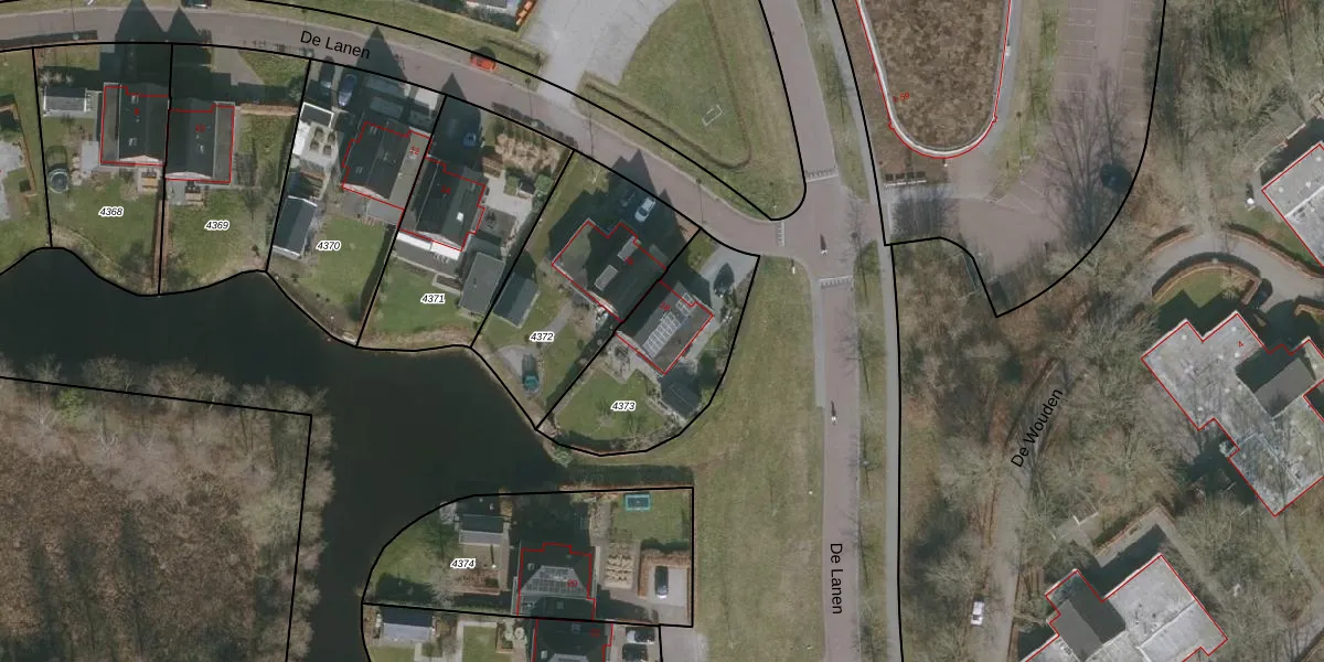 De Lanen 18 is gelegen op kadastraal perceel DTN02D4373. Deze kadastrale aanduiding is uniek en wordt gebruikt door het Kadaster om eigendomsrechten en andere zakelijke rechten vast te leggen. Het perceel maakt onderdeel uit van de kadastrale gemeente Drachten.