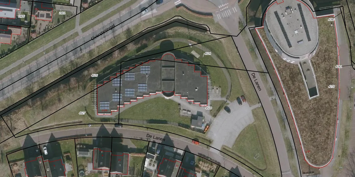 Het perceel waarop De Lanen 2-24 staat heeft een oppervlakte van 3685 m². Dit is een zeer groot perceel. De perceeloppervlakte wordt geregistreerd door het Kadaster. Gedetailleerde informatie over de maten van dit perceel kunt u vinden in het rapport Kadastrale kaart met maatvoering van De Lanen 2-24.