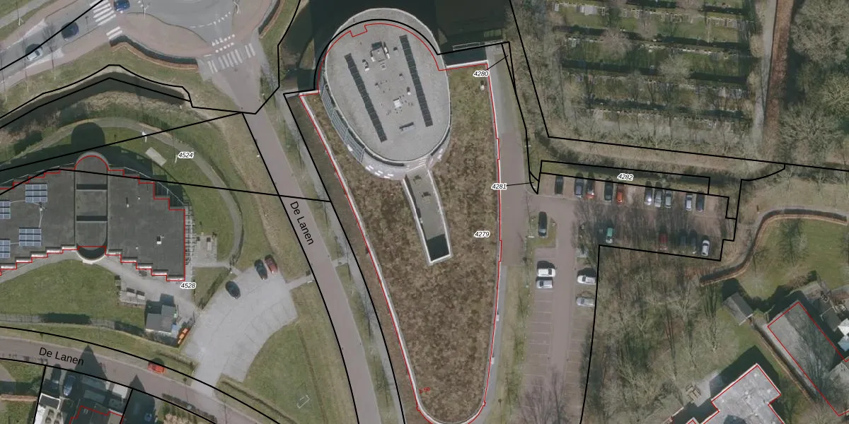 Het perceel waarop De Lanen 33 staat heeft een oppervlakte van 5840 m². Dit is een zeer groot perceel. De perceeloppervlakte wordt geregistreerd door het Kadaster. Gedetailleerde informatie over de maten van dit perceel kunt u vinden in het rapport Kadastrale kaart met maatvoering van De Lanen 33.
