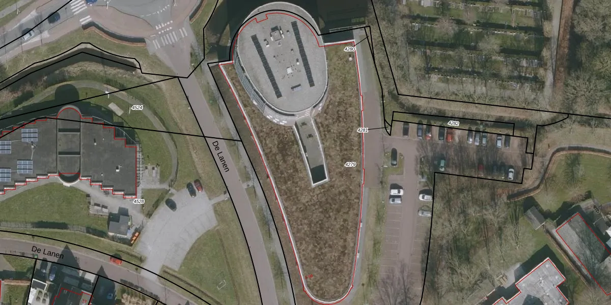Het perceel waarop De Lanen 41 staat heeft een oppervlakte van 5840 m². Dit is een zeer groot perceel. De perceeloppervlakte wordt geregistreerd door het Kadaster. Gedetailleerde informatie over de maten van dit perceel kunt u vinden in het rapport Kadastrale kaart met maatvoering van De Lanen 41.