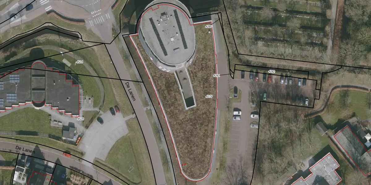 Het perceel waarop De Lanen 9 staat heeft een oppervlakte van 5840 m². Dit is een zeer groot perceel. De perceeloppervlakte wordt geregistreerd door het Kadaster. Gedetailleerde informatie over de maten van dit perceel kunt u vinden in het rapport Kadastrale kaart met maatvoering van De Lanen 9.