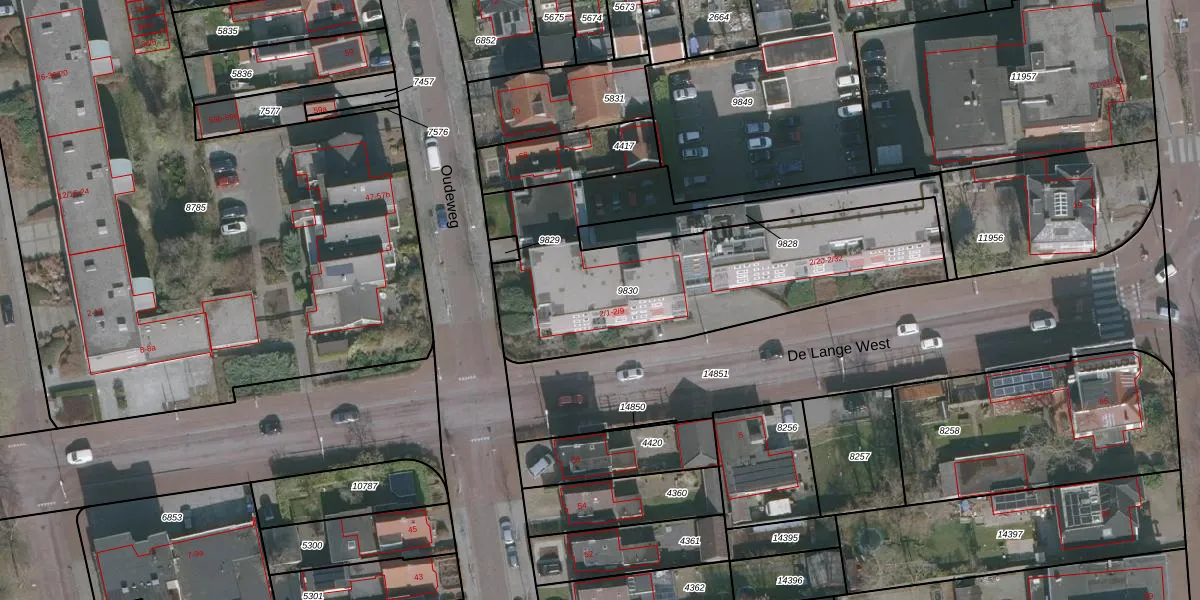 Het perceel waarop De Lange West 2-12 staat heeft een oppervlakte van 1526 m². Dit is een zeer groot perceel. De perceeloppervlakte wordt geregistreerd door het Kadaster. Gedetailleerde informatie over de maten van dit perceel kunt u vinden in het rapport Kadastrale kaart met maatvoering van De Lange West 2-12.