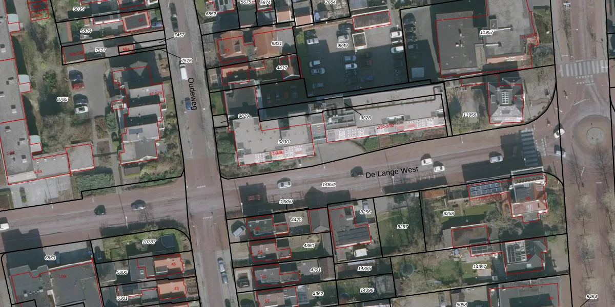 Het perceel waarop De Lange West 2-19 staat heeft een oppervlakte van 1526 m². Dit is een zeer groot perceel. De perceeloppervlakte wordt geregistreerd door het Kadaster. Gedetailleerde informatie over de maten van dit perceel kunt u vinden in het rapport Kadastrale kaart met maatvoering van De Lange West 2-19.