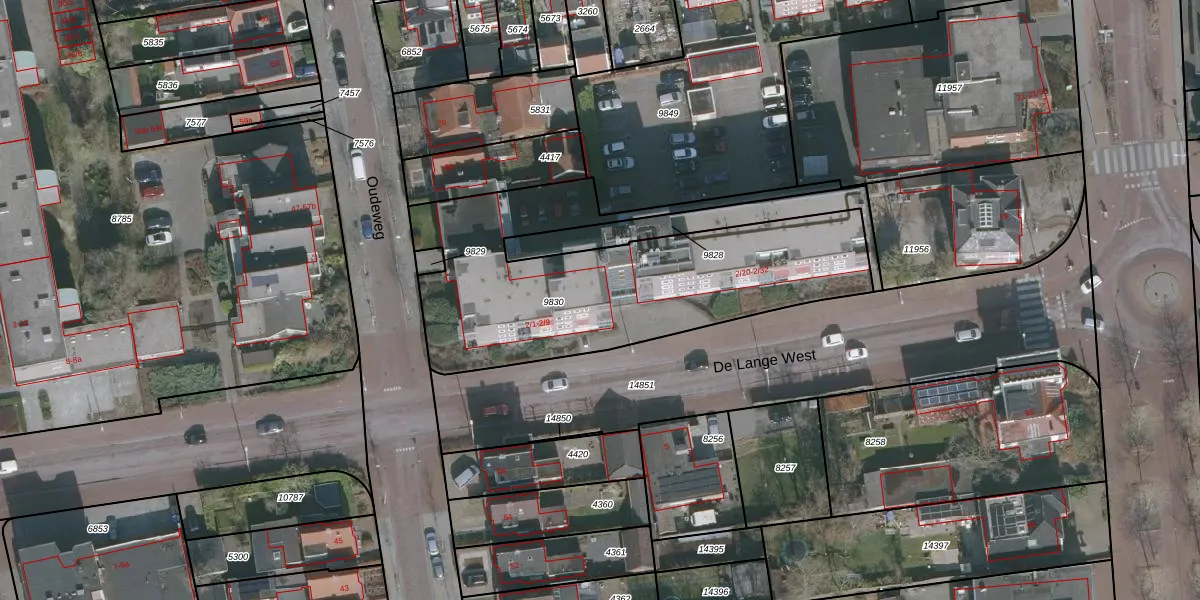 Het perceel waarop De Lange West 2-17 staat heeft een oppervlakte van 1526 m². Dit is een zeer groot perceel. De perceeloppervlakte wordt geregistreerd door het Kadaster. Gedetailleerde informatie over de maten van dit perceel kunt u vinden in het rapport Kadastrale kaart met maatvoering van De Lange West 2-17.