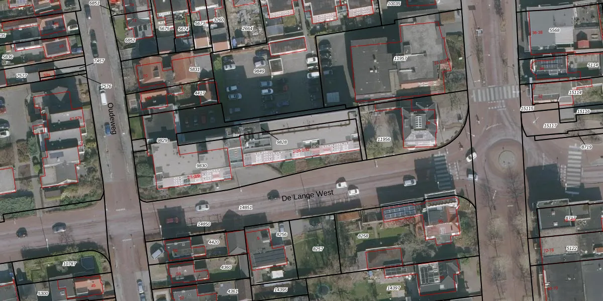 Het perceel waarop De Lange West 2-27 staat heeft een oppervlakte van 1526 m². Dit is een zeer groot perceel. De perceeloppervlakte wordt geregistreerd door het Kadaster. Gedetailleerde informatie over de maten van dit perceel kunt u vinden in het rapport Kadastrale kaart met maatvoering van De Lange West 2-27.