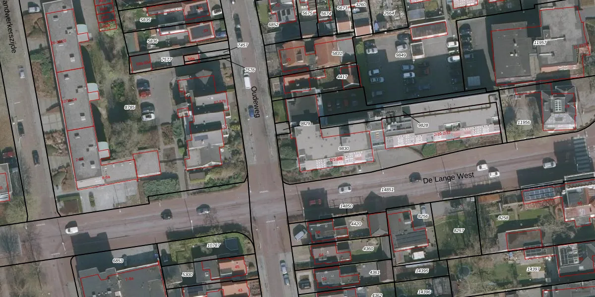 Het perceel waarop De Lange West 2-6 staat heeft een oppervlakte van 1526 m². Dit is een zeer groot perceel. De perceeloppervlakte wordt geregistreerd door het Kadaster. Gedetailleerde informatie over de maten van dit perceel kunt u vinden in het rapport Kadastrale kaart met maatvoering van De Lange West 2-6.