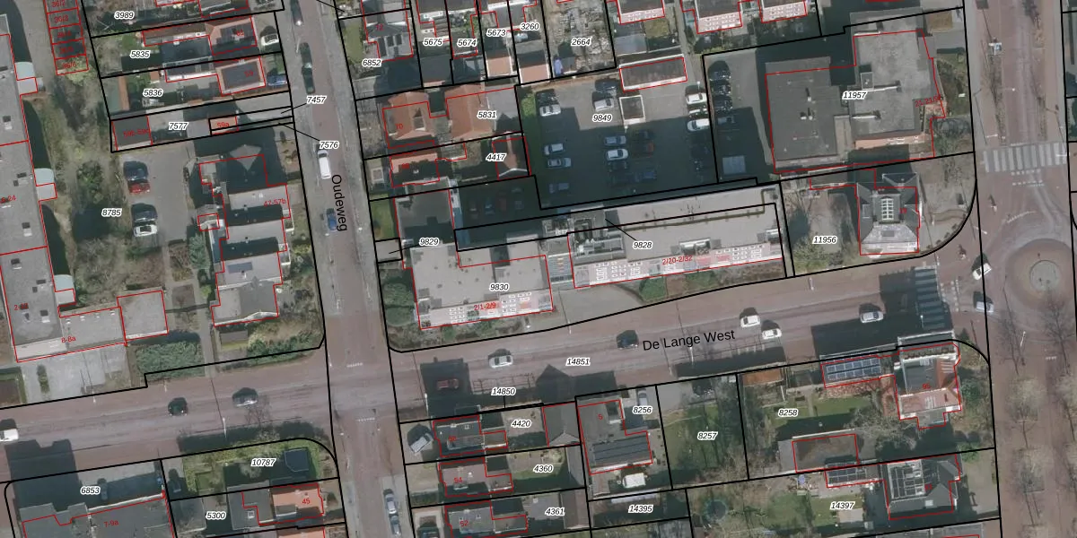 De Lange West 2-16 is gelegen op kadastraal perceel DTN02A9830. Deze kadastrale aanduiding is uniek en wordt gebruikt door het Kadaster om eigendomsrechten en andere zakelijke rechten vast te leggen. Het perceel maakt onderdeel uit van de kadastrale gemeente Drachten.
