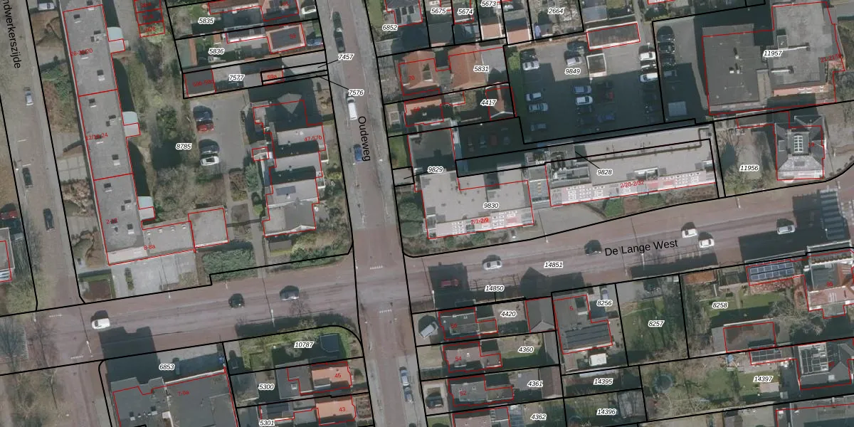 Het perceel waarop De Lange West 2-7 staat heeft een oppervlakte van 1526 m². Dit is een zeer groot perceel. De perceeloppervlakte wordt geregistreerd door het Kadaster. Gedetailleerde informatie over de maten van dit perceel kunt u vinden in het rapport Kadastrale kaart met maatvoering van De Lange West 2-7.