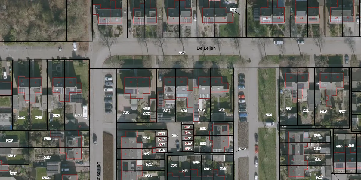 Gebruik de zoekbalk of klik op een perceel voor informatie over de adressen binnen dit perceel.