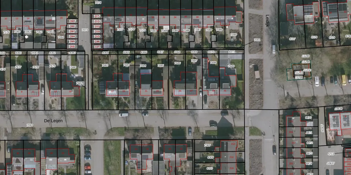 Het perceel waarop De Leijen 25 staat heeft een oppervlakte van 305 m². Dit is een groot perceel. De perceeloppervlakte wordt geregistreerd door het Kadaster. Gedetailleerde informatie over de maten van dit perceel kunt u vinden in het rapport Kadastrale kaart met maatvoering van De Leijen 25.