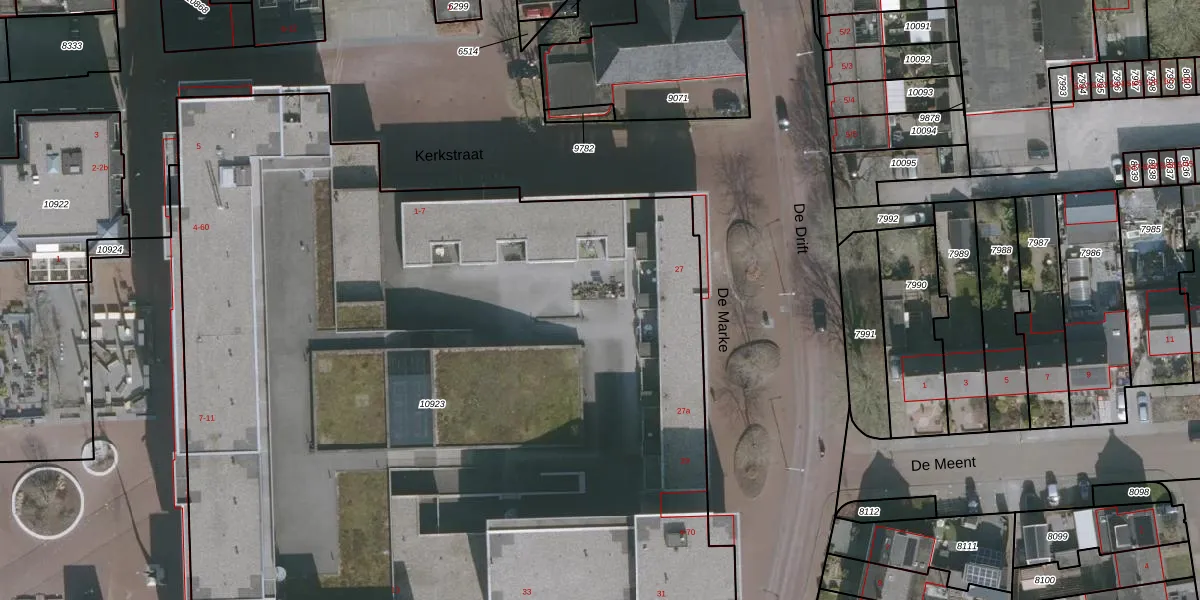 Het perceel waarop De Marke 27 staat heeft een oppervlakte van 6539 m². Dit is een zeer groot perceel. De perceeloppervlakte wordt geregistreerd door het Kadaster. Gedetailleerde informatie over de maten van dit perceel kunt u vinden in het rapport Kadastrale kaart met maatvoering van De Marke 27.