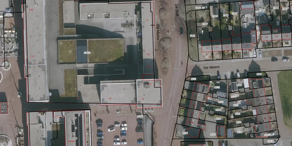 Het perceel waarop De Marke 29 staat heeft een oppervlakte van 6539 m². Dit is een zeer groot perceel. De perceeloppervlakte wordt geregistreerd door het Kadaster. Gedetailleerde informatie over de maten van dit perceel kunt u vinden in het rapport Kadastrale kaart met maatvoering van De Marke 29.
