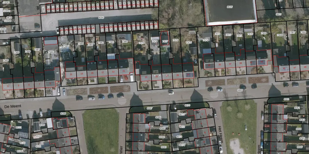 Gebruik de zoekbalk of klik op een perceel voor informatie over de adressen binnen dit perceel.