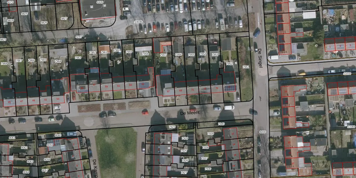 Het perceel waarop De Meent 69 staat heeft een oppervlakte van 263 m². Dit is een middelgroot perceel. De perceeloppervlakte wordt geregistreerd door het Kadaster. Gedetailleerde informatie over de maten van dit perceel kunt u vinden in het rapport Kadastrale kaart met maatvoering van De Meent 69.