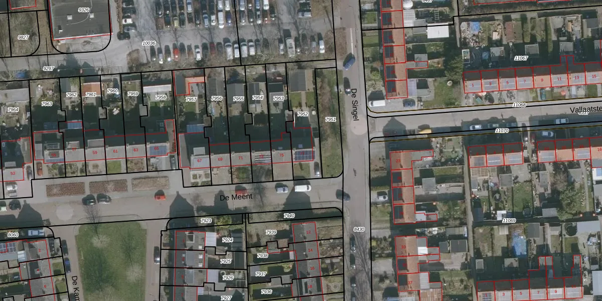 Het perceel waarop De Meent 77 staat heeft een oppervlakte van 395 m². Dit is een groot perceel. De perceeloppervlakte wordt geregistreerd door het Kadaster. Gedetailleerde informatie over de maten van dit perceel kunt u vinden in het rapport Kadastrale kaart met maatvoering van De Meent 77.