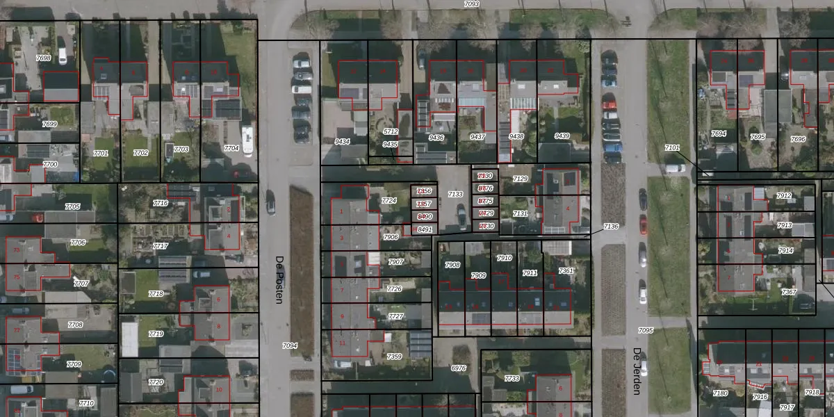 Gebruik de zoekbalk of klik op een perceel voor informatie over de adressen binnen dit perceel.