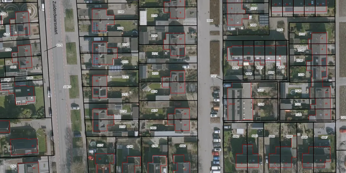Gebruik de zoekbalk of klik op een perceel voor informatie over de adressen binnen dit perceel.