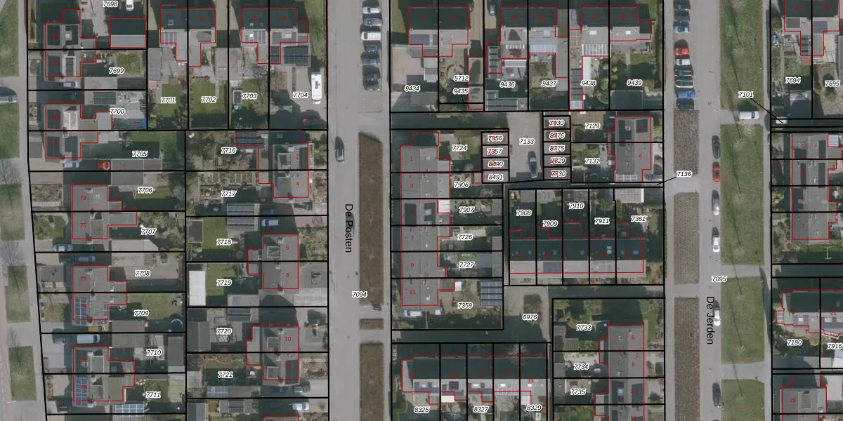 Het perceel waarop De Posten 5 staat heeft een oppervlakte van 168 m². Dit is een middelgroot perceel. De perceeloppervlakte wordt geregistreerd door het Kadaster. Gedetailleerde informatie over de maten van dit perceel kunt u vinden in het rapport Kadastrale kaart met maatvoering van De Posten 5.