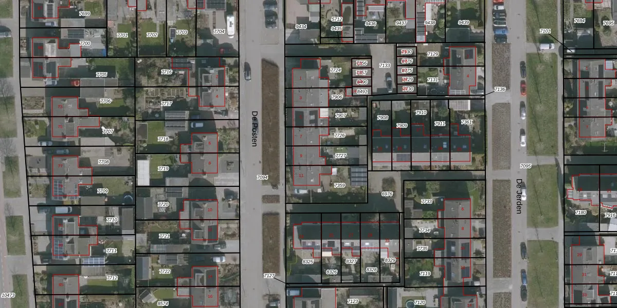 Het perceel waarop De Posten 9 staat heeft een oppervlakte van 168 m². Dit is een middelgroot perceel. De perceeloppervlakte wordt geregistreerd door het Kadaster. Gedetailleerde informatie over de maten van dit perceel kunt u vinden in het rapport Kadastrale kaart met maatvoering van De Posten 9.