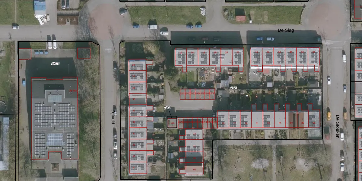 Het perceel waarop De Slag 12-31 staat heeft een oppervlakte van 7015 m². Dit is een zeer groot perceel. De perceeloppervlakte wordt geregistreerd door het Kadaster. Gedetailleerde informatie over de maten van dit perceel kunt u vinden in het rapport Kadastrale kaart met maatvoering van De Slag 12-31.