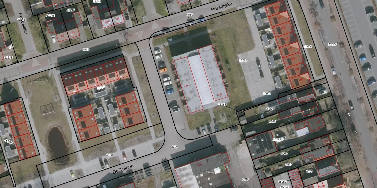 Het perceel waarop De Tuinen 1-c staat heeft een oppervlakte van 4102 m². Dit is een zeer groot perceel. De perceeloppervlakte wordt geregistreerd door het Kadaster. Gedetailleerde informatie over de maten van dit perceel kunt u vinden in het rapport Kadastrale kaart met maatvoering van De Tuinen 1-c.