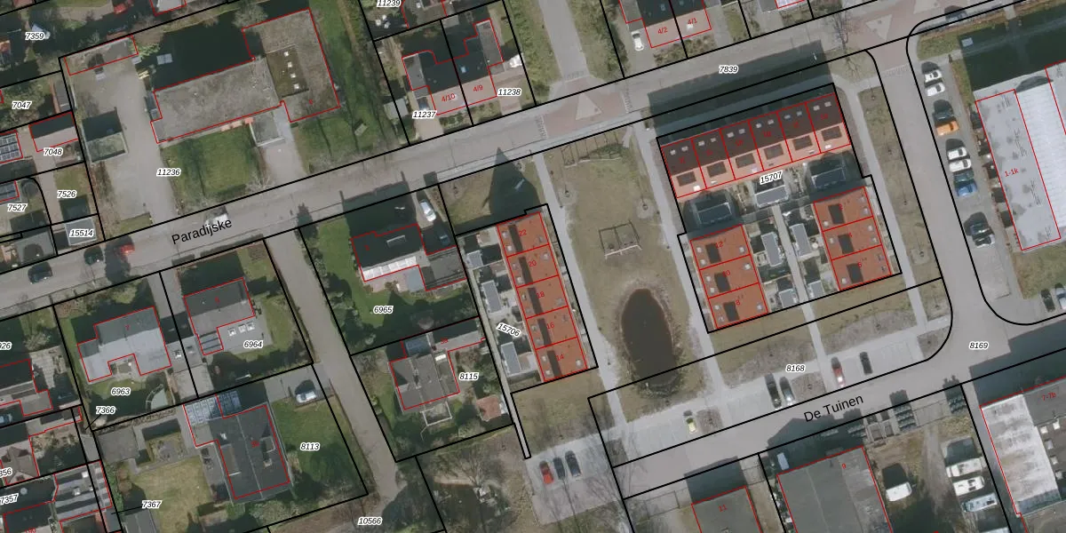 Het perceel waarop De Tuinen 20 staat heeft een oppervlakte van 590 m². Dit is een groot perceel. De perceeloppervlakte wordt geregistreerd door het Kadaster. Gedetailleerde informatie over de maten van dit perceel kunt u vinden in het rapport Kadastrale kaart met maatvoering van De Tuinen 20.