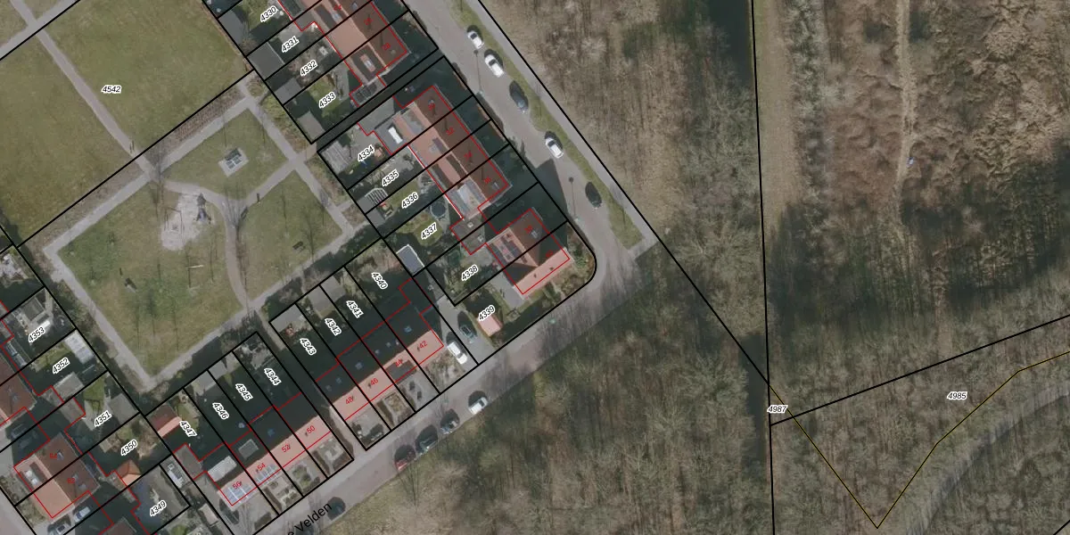 Het perceel waarop De Velden 40 staat heeft een oppervlakte van 367 m². Dit is een groot perceel. De perceeloppervlakte wordt geregistreerd door het Kadaster. Gedetailleerde informatie over de maten van dit perceel kunt u vinden in het rapport Kadastrale kaart met maatvoering van De Velden 40.