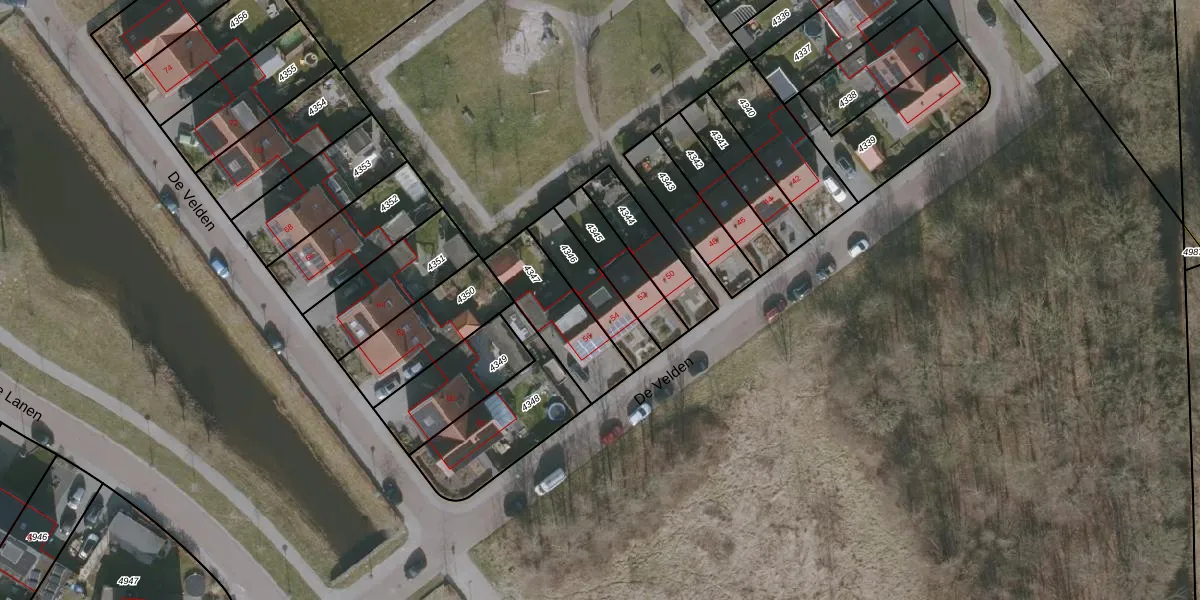 Het perceel waarop De Velden 54 staat heeft een oppervlakte van 171 m². Dit is een middelgroot perceel. De perceeloppervlakte wordt geregistreerd door het Kadaster. Gedetailleerde informatie over de maten van dit perceel kunt u vinden in het rapport Kadastrale kaart met maatvoering van De Velden 54.
