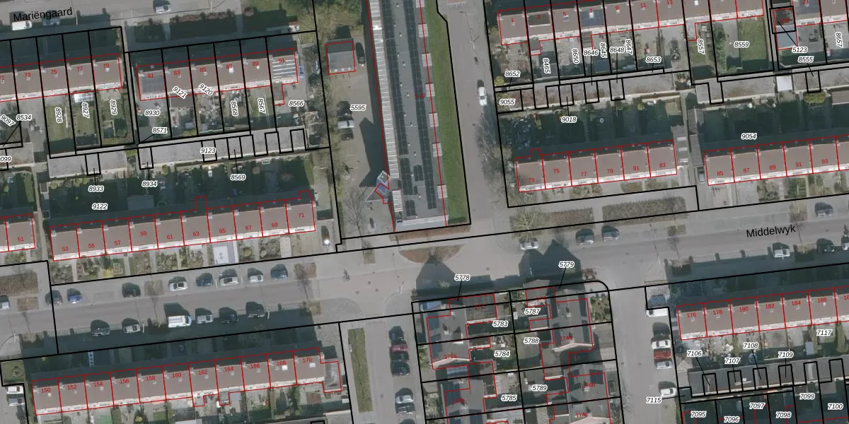 Het perceel waarop het adres ligt is DTN02-B-5595. De afkorting 'DTN02' staat voor kadastrale gemeente Drachten. De oppervlakte van het perceel is 2077 m². Dat is groter dan gemiddeld in Drachten, waar de gemiddelde perceeloppervlakte op 1805,26 m² ligt. De grootste perceeloppervlakte in de kadastrale gemeente is 42,8 ha. De kleinste oppervlakte bedraagt 0 m². Er zijn 24 adressen aanwezig op het perceel. De huidige grenzen van het perceel zijn digitaal in de Basisregistratie Kadaster (BRK) geregistreerd op 16-03-2011.