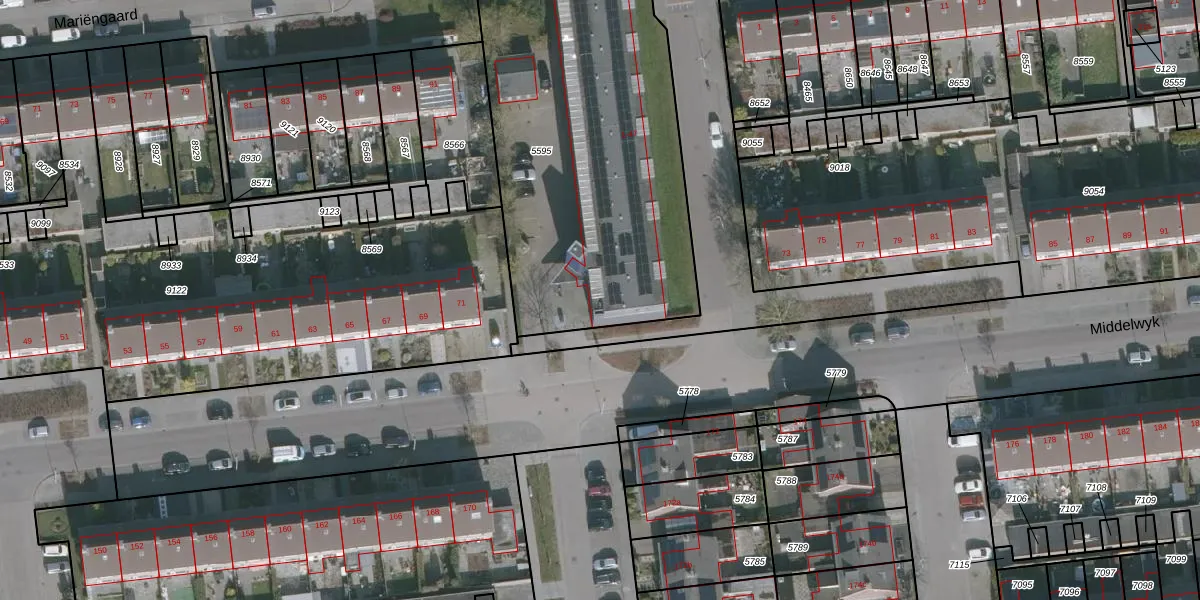 Het adres is gelegen op perceel 5595 in de sectie B en de kadastrale gemeente Drachten. De kadastrale aanduiding is aldus DTN02-B-5595. De oppervlakte van het perceel is 2077 m². Dat is groter dan gemiddeld in Drachten, waar de gemiddelde perceeloppervlakte op 1805,26 m² ligt. De grootste perceeloppervlakte in de kadastrale gemeente is 42,8 ha. De kleinste oppervlakte bedraagt 0 m². Er zijn 24 adressen aanwezig op het perceel. De laatste wijziging in het de Basisregistratie Kadaster (BRK) was op 16-03-2011.