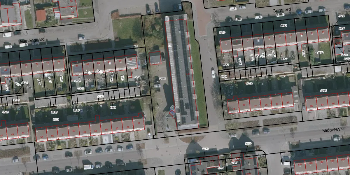 Het adres is gelegen op perceel 5595 in de sectie B en de kadastrale gemeente Drachten. De kadastrale aanduiding is aldus DTN02-B-5595. Het perceel is met 2077 m² relatief groot. Het gemiddelde ligt in de kadastrale gemeente Drachten op 1805,26 m². Het kleinste perceel in de kadastrale gemeente is 0 m² groot. De grootste perceeloppervlakte is 42,8 ha. Op het perceel zijn 24 adressen aanwezig. In de Basisregistratie Kadaster (BRK) werden de grenzen van het perceel geregistreerd op 16-03-2011.
