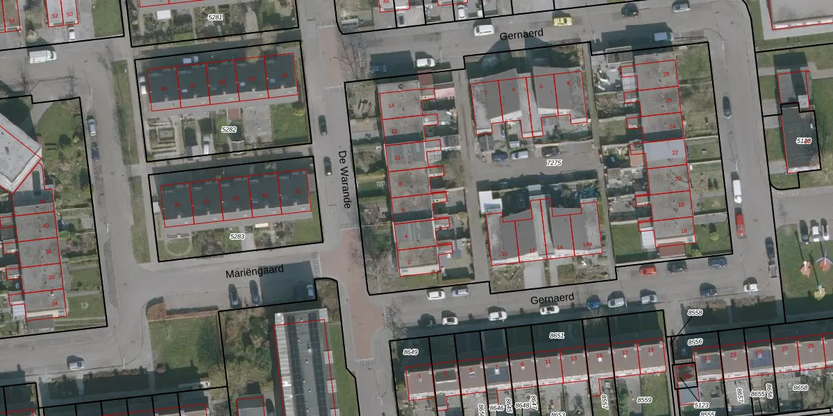 Het perceel waarop De Warande 6 staat heeft een oppervlakte van 4653 m². Dit is een zeer groot perceel. De perceeloppervlakte wordt geregistreerd door het Kadaster. Gedetailleerde informatie over de maten van dit perceel kunt u vinden in het rapport Kadastrale kaart met maatvoering van De Warande 6.
