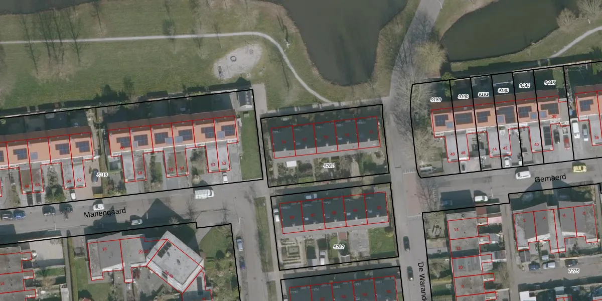 Het perceel waarop De Warande 77 staat heeft een oppervlakte van 930 m². Dit is een groot perceel. De perceeloppervlakte wordt geregistreerd door het Kadaster. Gedetailleerde informatie over de maten van dit perceel kunt u vinden in het rapport Kadastrale kaart met maatvoering van De Warande 77.