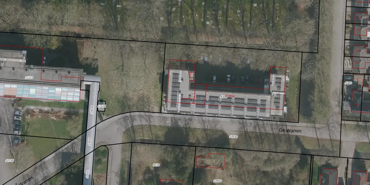Het perceel waarop De Warren 49-6 staat heeft een oppervlakte van 2825 m². Dit is een zeer groot perceel. De perceeloppervlakte wordt geregistreerd door het Kadaster. Gedetailleerde informatie over de maten van dit perceel kunt u vinden in het rapport Kadastrale kaart met maatvoering van De Warren 49-6.