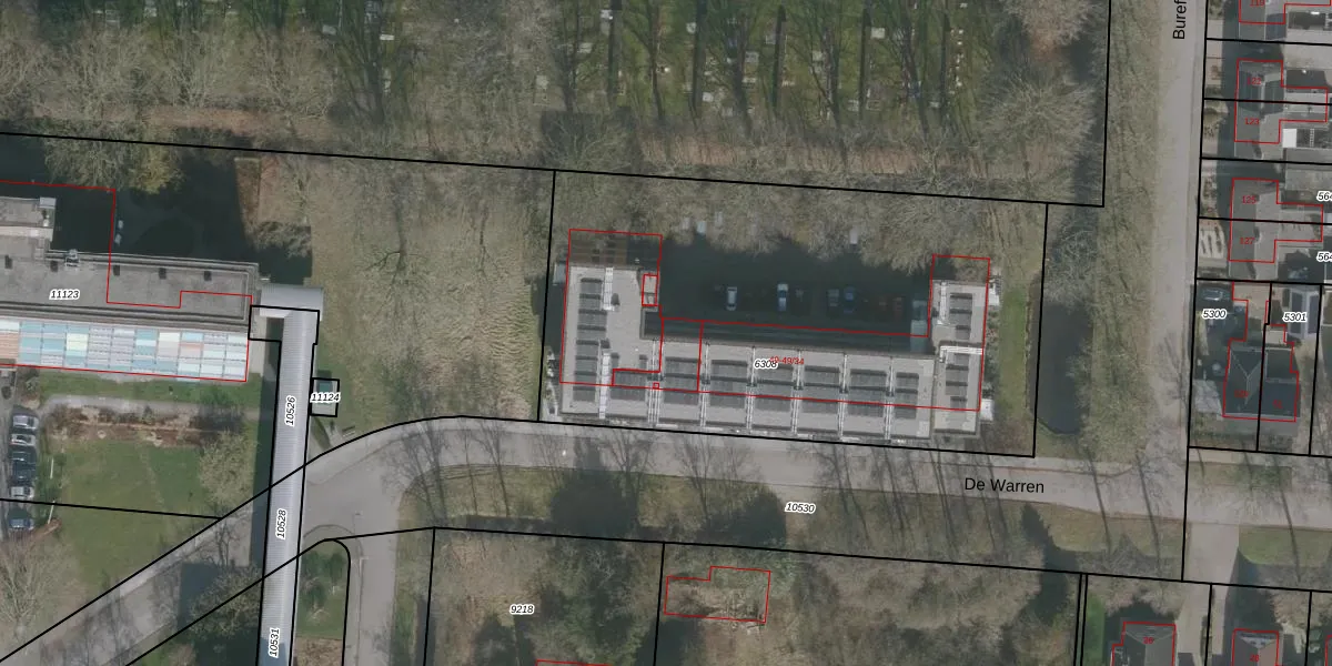 Het perceel waarop De Warren 49-18 staat heeft een oppervlakte van 2825 m². Dit is een zeer groot perceel. De perceeloppervlakte wordt geregistreerd door het Kadaster. Gedetailleerde informatie over de maten van dit perceel kunt u vinden in het rapport Kadastrale kaart met maatvoering van De Warren 49-18.