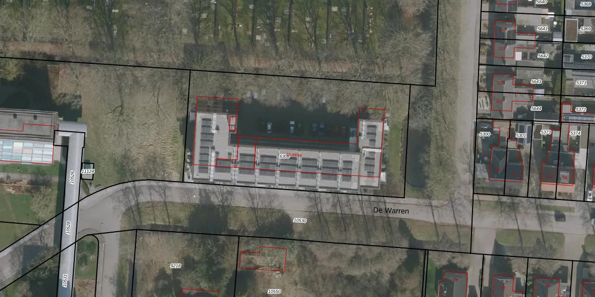 Het perceel waarop De Warren 49-21 staat heeft een oppervlakte van 2825 m². Dit is een zeer groot perceel. De perceeloppervlakte wordt geregistreerd door het Kadaster. Gedetailleerde informatie over de maten van dit perceel kunt u vinden in het rapport Kadastrale kaart met maatvoering van De Warren 49-21.