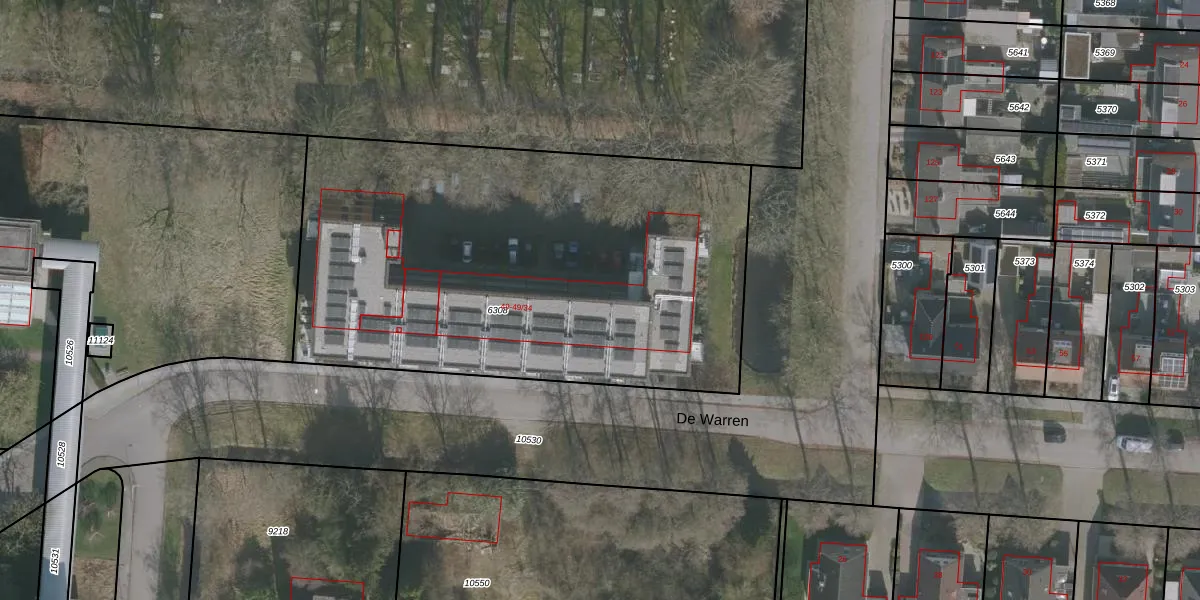 Het perceel waarop De Warren 49-23 staat heeft een oppervlakte van 2825 m². Dit is een zeer groot perceel. De perceeloppervlakte wordt geregistreerd door het Kadaster. Gedetailleerde informatie over de maten van dit perceel kunt u vinden in het rapport Kadastrale kaart met maatvoering van De Warren 49-23.