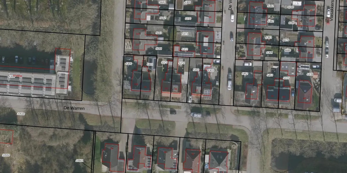 Het perceel waarop De Warren 55 staat heeft een oppervlakte van 244 m². Dit is een middelgroot perceel. De perceeloppervlakte wordt geregistreerd door het Kadaster. Gedetailleerde informatie over de maten van dit perceel kunt u vinden in het rapport Kadastrale kaart met maatvoering van De Warren 55.