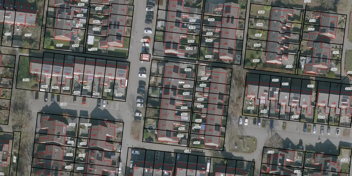 Gebruik de zoekbalk of klik op een perceel voor informatie over de adressen binnen dit perceel.