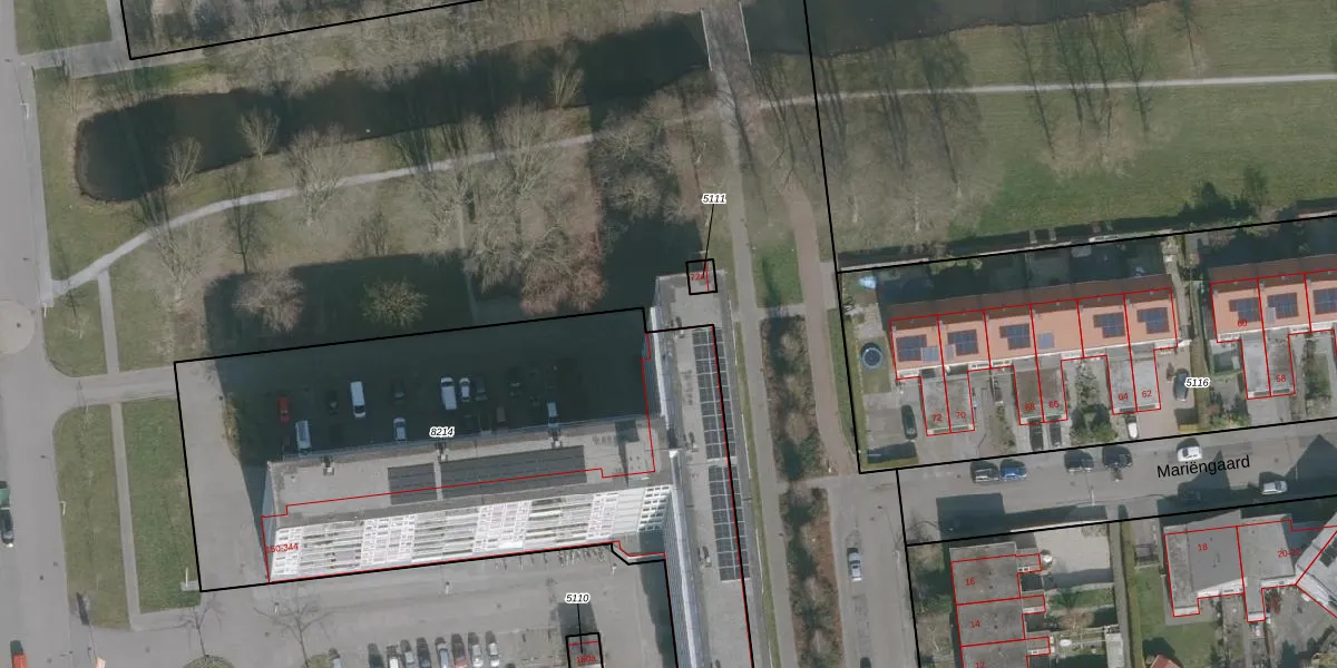 Het adres is gelegen op perceel 8214 in de sectie B en de kadastrale gemeente Drachten. De kadastrale aanduiding is aldus DTN02-B-8214. De oppervlakte van het perceel is 3187 m². Dat is groter dan gemiddeld in Drachten, waar de gemiddelde perceeloppervlakte op 1805,26 m² ligt. Het kleinste perceel in de kadastrale gemeente is 0 m² groot. De grootste perceeloppervlakte is 42,8 ha. Er zijn 118 adressen aanwezig op het perceel. In de Basisregistratie Kadaster (BRK) werden de grenzen van het perceel geregistreerd op 08-11-2021.