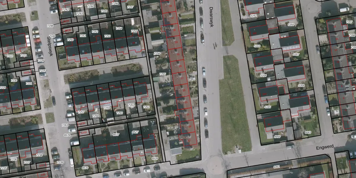 Het perceel waarop Dwarswyk 25 staat heeft een oppervlakte van 2933 m². Dit is een zeer groot perceel. De perceeloppervlakte wordt geregistreerd door het Kadaster. Gedetailleerde informatie over de maten van dit perceel kunt u vinden in het rapport Kadastrale kaart met maatvoering van Dwarswyk 25.