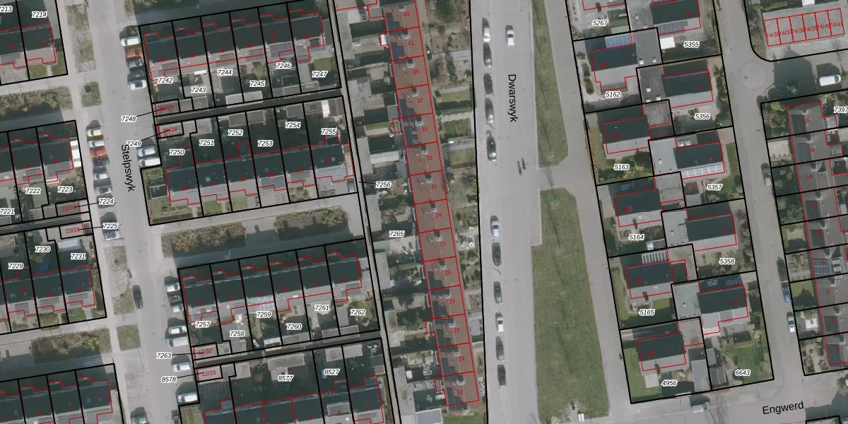 Dwarswyk 29 is gelegen op kadastraal perceel DTN02B7265. Deze kadastrale aanduiding is uniek en wordt gebruikt door het Kadaster om eigendomsrechten en andere zakelijke rechten vast te leggen. Het perceel maakt onderdeel uit van de kadastrale gemeente Drachten.