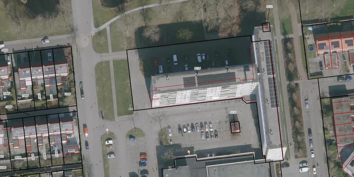 Het adres is gelegen op perceel 8214 in de sectie B en de kadastrale gemeente Drachten. De kadastrale aanduiding is aldus DTN02-B-8214. De oppervlakte van het perceel is 3187 m². Dat is groter dan gemiddeld in Drachten, waar de gemiddelde perceeloppervlakte op 1803,84 m² ligt. Het grootste perceel in de kadastrale gemeente is 42,8 ha. Het kleinste perceel heeft een oppervlakte van 0 m². Op het perceel zijn 118 adressen aanwezig. In de Basisregistratie Kadaster (BRK) werden de grenzen van het perceel geregistreerd op 08-11-2021.