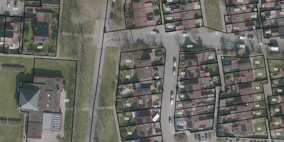 Gebruik de zoekbalk of klik op een perceel voor informatie over de adressen binnen dit perceel.