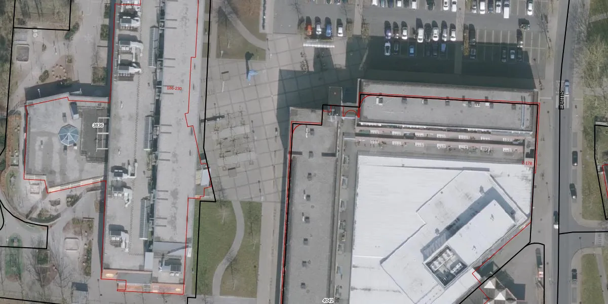Het perceel waarop Eems 16 staat heeft een oppervlakte van 6050 m². Dit is een zeer groot perceel. De perceeloppervlakte wordt geregistreerd door het Kadaster. Gedetailleerde informatie over de maten van dit perceel kunt u vinden in het rapport Kadastrale kaart met maatvoering van Eems 16.