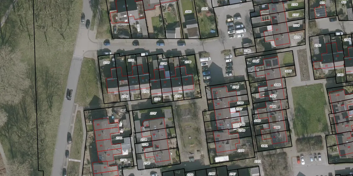 Het perceel waarop Eems 61 staat heeft een oppervlakte van 150 m². Dit is een middelgroot perceel. De perceeloppervlakte wordt geregistreerd door het Kadaster. Gedetailleerde informatie over de maten van dit perceel kunt u vinden in het rapport Kadastrale kaart met maatvoering van Eems 61.